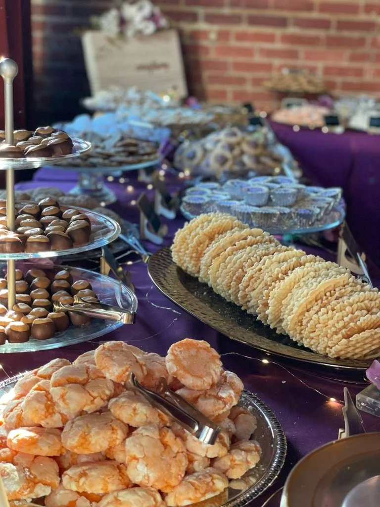 Celebrate a beloved Pittsburgh wedding tradition with our expert cookie table setup! We coordinate and beautifully arrange bakery-fresh or family-baked cookies, transforming them into a stunning centerpiece that perfectly complements your wedding style.